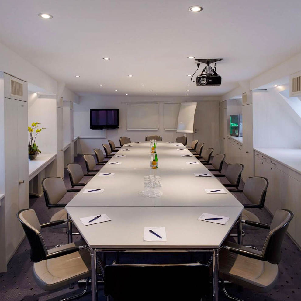 Der Seminarraum fasziniert mit seiner Einfachheit und Vornehmheit. Der erstklassige Holzboden harmoniert perfekt mit modernster Präsentationstechnik und macht den Raum ideal für strategische und exklusive Sitzungen.
