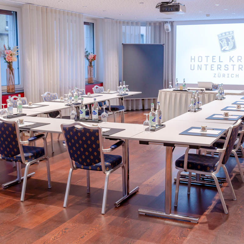 Raum C überzeugt durch seine zentrale Lage und die stilvolle Einrichtung im traditionsbewussten Ambiente der Krone Unterstrass. Der komfortable Raum ist ideal für kleinere Veranstaltungen und Meetings.