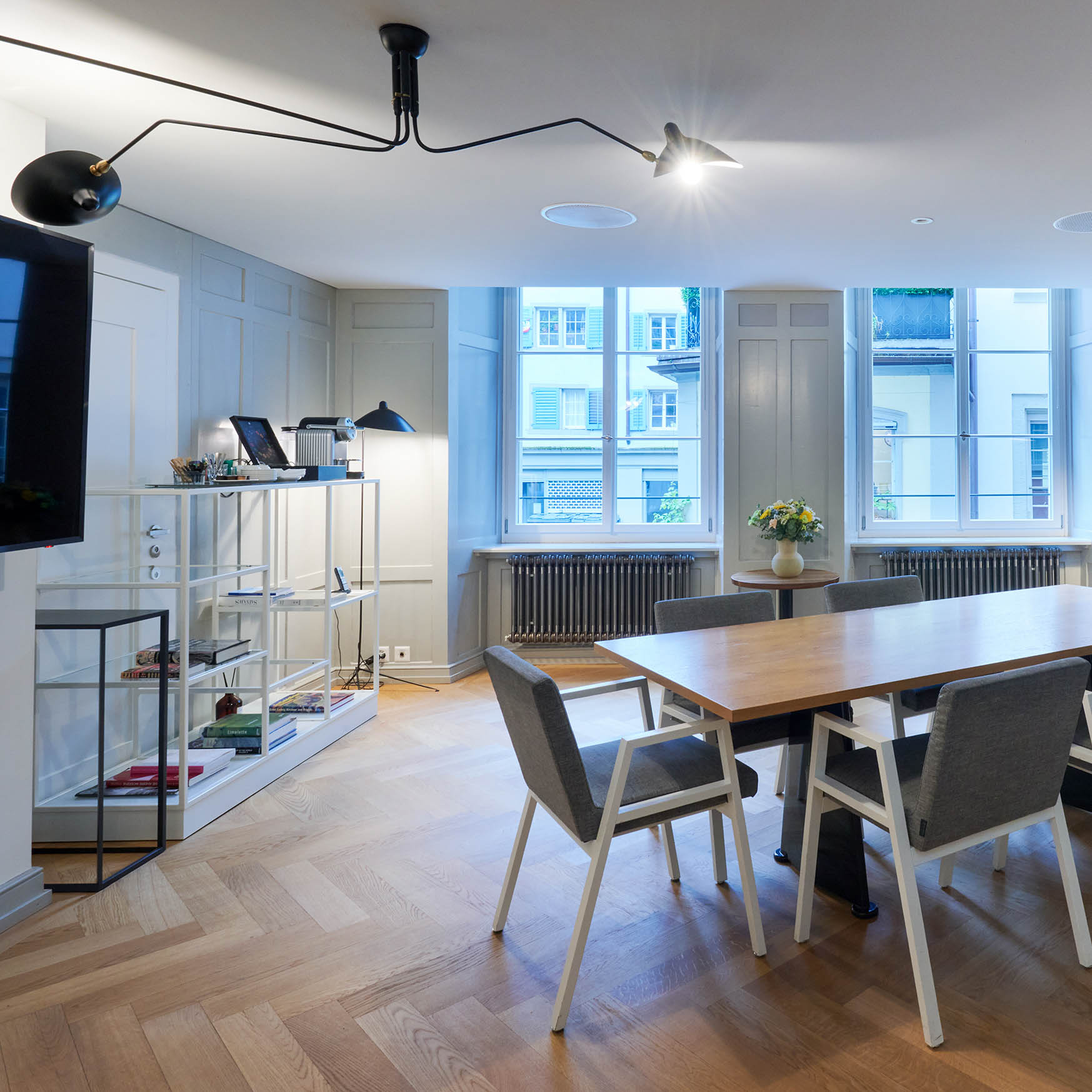 Der ästhetische Salon – mitten in der Altstadt Zürichs – mit seiner geschmackvollen, schlichten Wohnzimmeratmosphäre ist der perfekte Platz für unkomplizierte und intime Besprechungen.