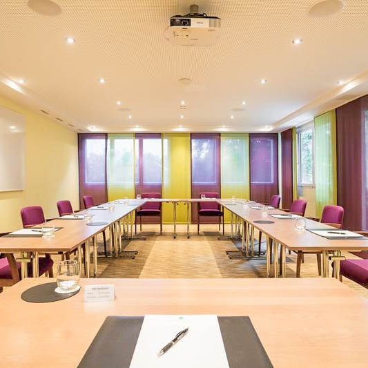 Mit seinen klaren, hellen Linien und dem lichtdurchfluteten Ambiente bietet der grosszügige, modern gestaltete Raum einen herrlichen Ausblick in die umliegende Natur. Die offene Atmosphäre schafft ideale Voraussetzungen für Plenumstreffen, Präsentationen und Vorträge.